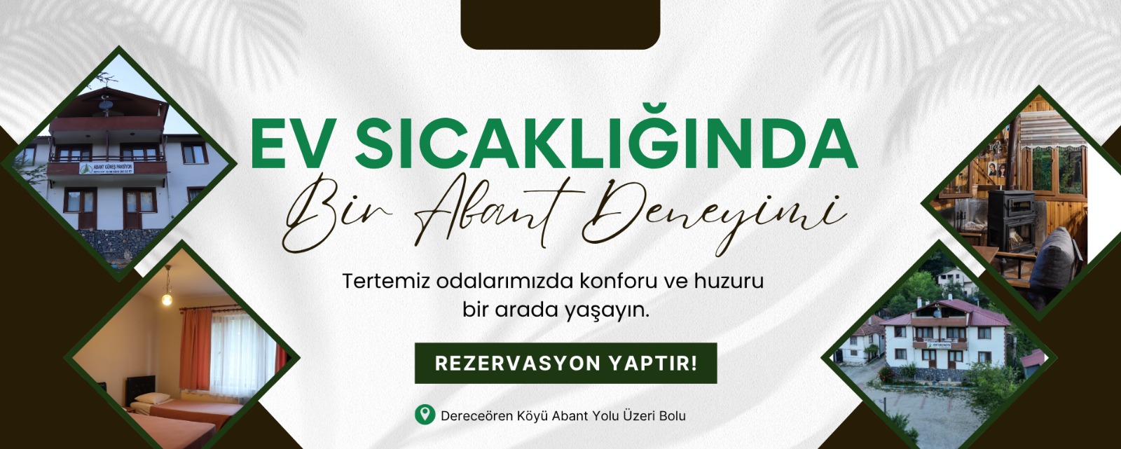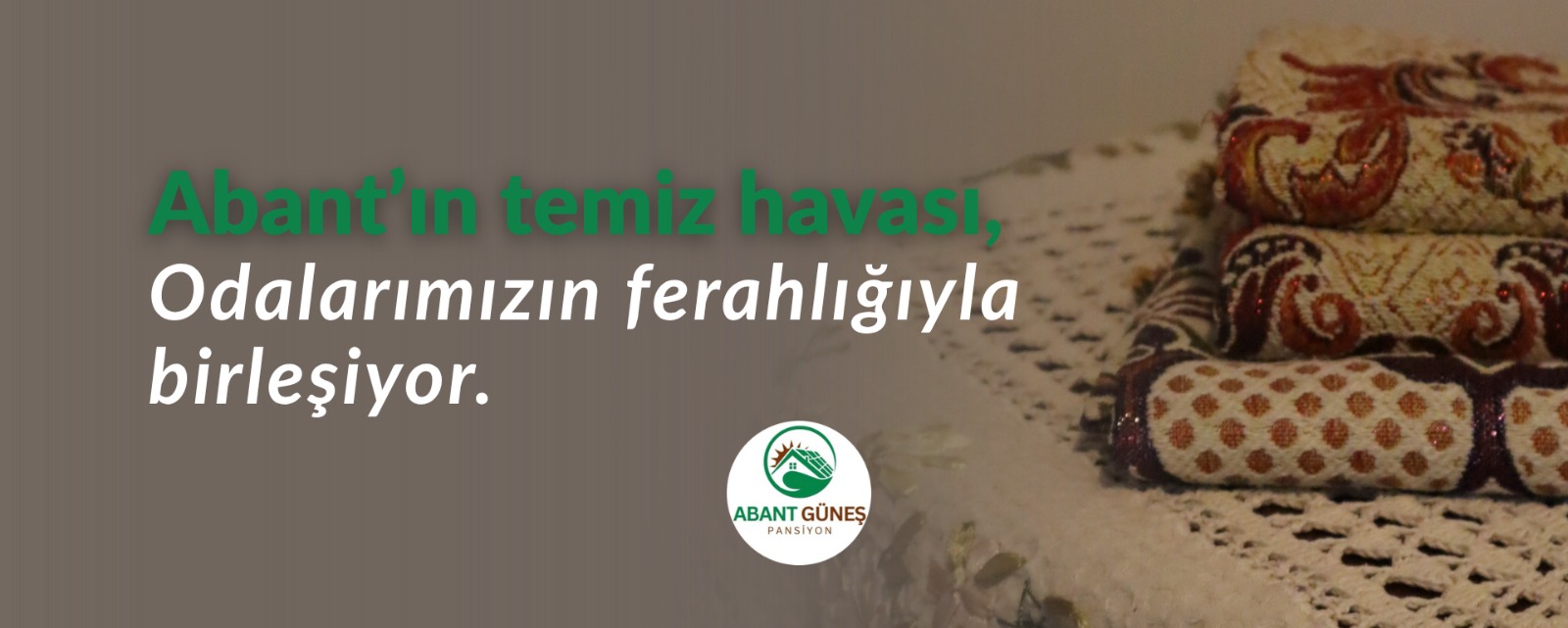 Abant Güneş Pansiyon, Bolu’nun en güzel köşelerinden biri olan Abant’ta, doğayla iç içe konumuyla misafirlerine huzur dolu bir tatil sunar. Abant’a sadece 8 km, Abant Kavşağı’na ise 11 km mesafedeyiz. 8 oda ve 1 restoranımızla sizleri ağırlamaktan mutluluk duyarız. Yöresel kahvaltımız, sıcacık aile ortamımız ve doğal güzelliklerimizle sizi bekliyoruz.